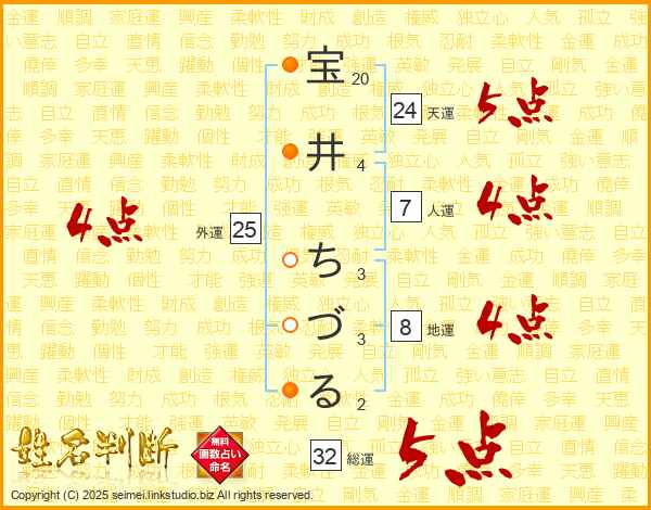 宝井ちづるさんの外運は25画の4点!