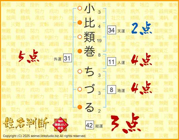 小(3画)比(4画)類(19画)巻(8画) ち(3画)づ(3画)る(2画)