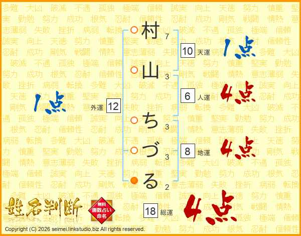 村(7画)山(3画) ち(3画)づ(3画)る(2画)