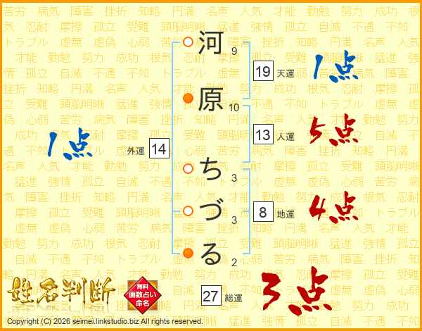 河原ちづるさんの人運は13画の5点!