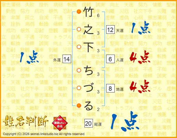 竹(6画)之(3画)下(3画) ち(3画)づ(3画)る(2画)