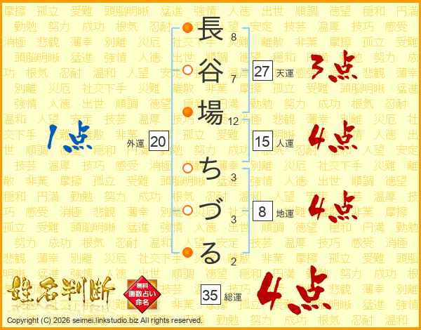 長谷場ちづるさんの総運は35画の4点!
