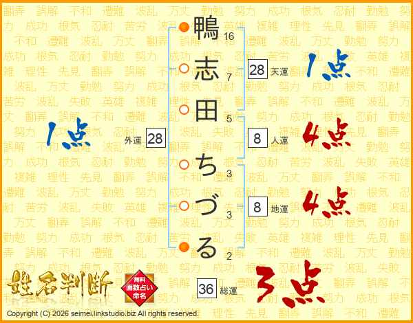 鴨志田ちづるさんの総運は36画の3点!