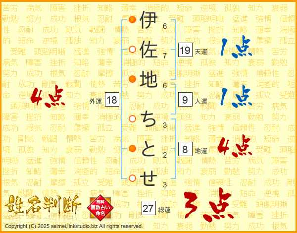 伊(6画)佐(7画)地(6画) ち(3画)と(2画)せ(3画)
