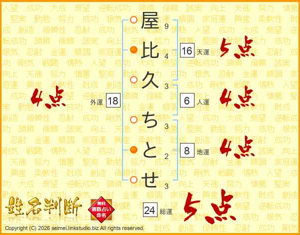 屋比久ちとせさんの外運は18画の4点!