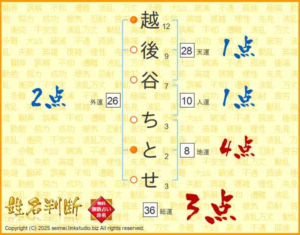 越後谷ちとせさんの総運は36画の3点!