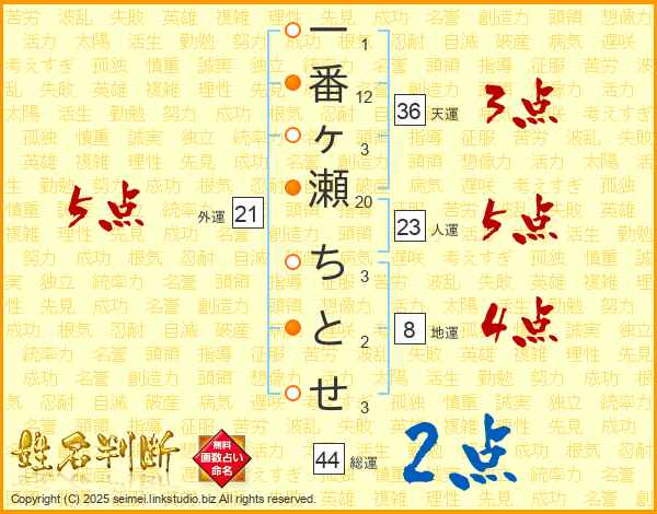 一番ヶ瀬ちとせさんの総運は44画の2点