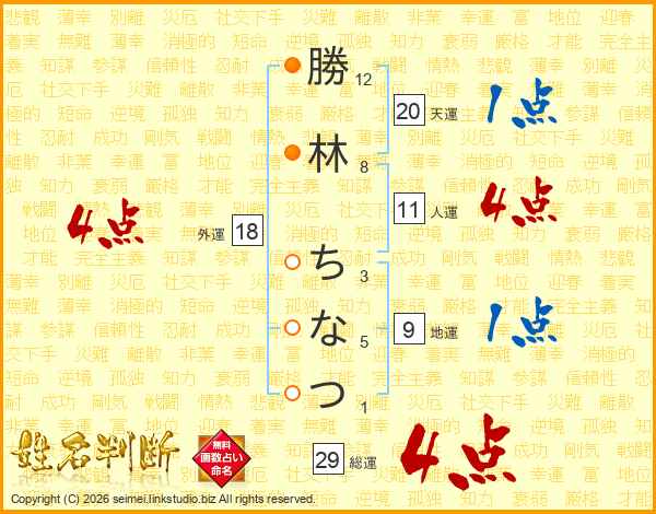 勝(12画)林(8画) ち(3画)な(5画)つ(1画)