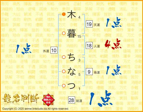 木(4画)暮(15画) ち(3画)な(5画)つ(1画)