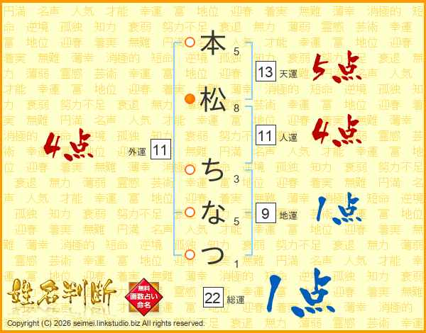 本松ちなつさんの天運は13画の5点!