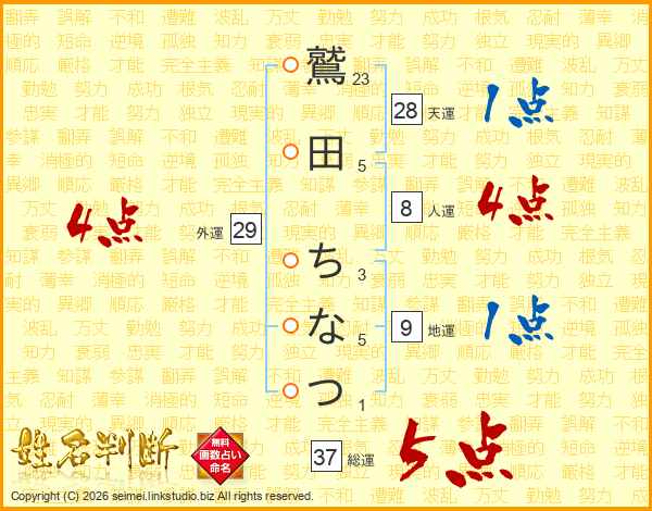 鷲田ちなつさんの総運は37画の5点!