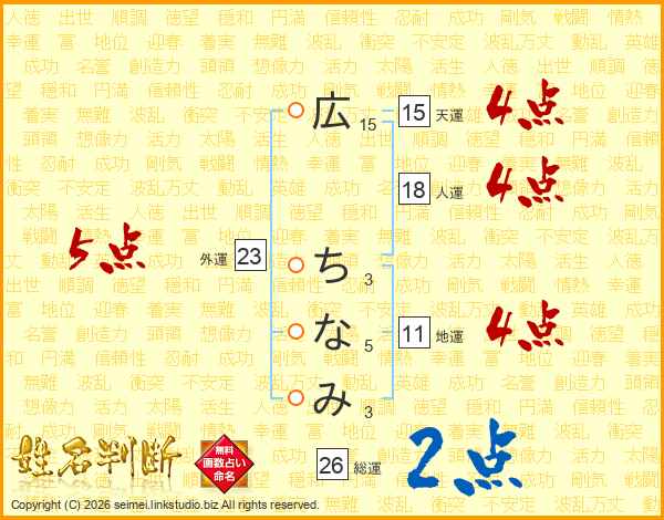 広ちなみさんの総運は26画の2点!
