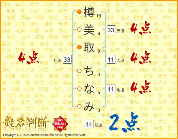 樽美取ちなみさんの天運は33画の4点!