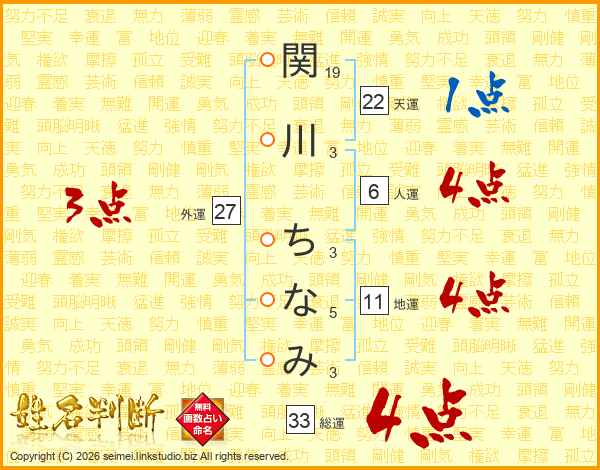 関川ちなみさんの総運は33画の4点!