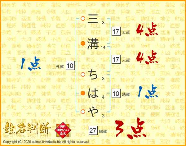 三溝ちはやさんの総運は27画の3点!