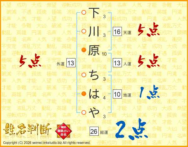 下川原ちはやさんの総運は26画の2点!