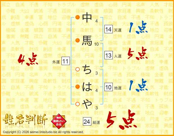 中馬ちはやさんの天運は14画の1点!