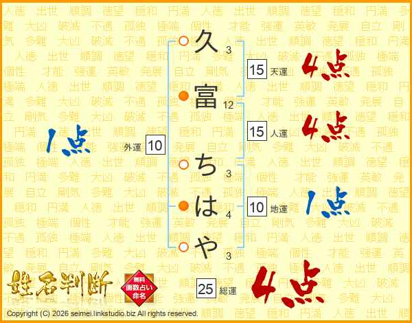 久富ちはやさんの総運は25画の4点!
