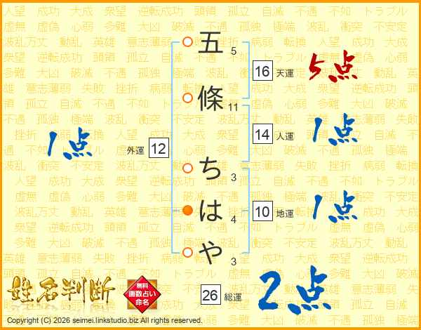 五條ちはやさんの総運は26画の2点!