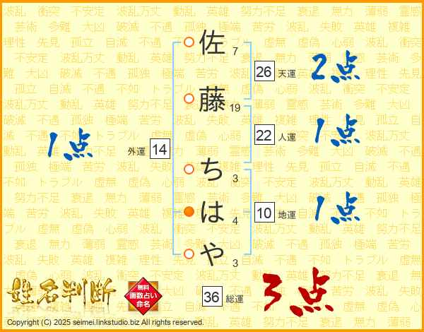 佐藤ちはやさんの総運は36画の3点!