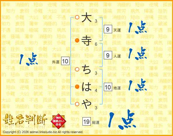 大(3画)寺(6画) ち(3画)は(4画)や(3画)