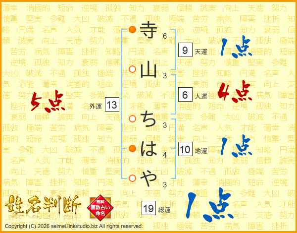 寺(6画)山(3画) ち(3画)は(4画)や(3画)
