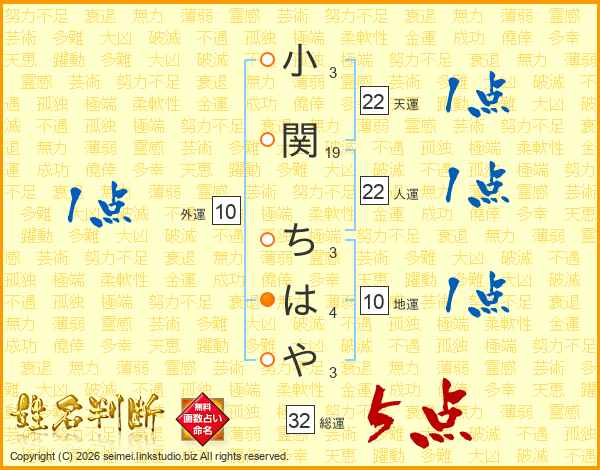 小関ちはやさんの総運は32画の5点!