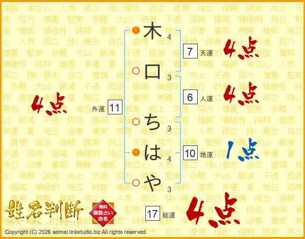 木口ちはやさんの総運は17画の4点!
