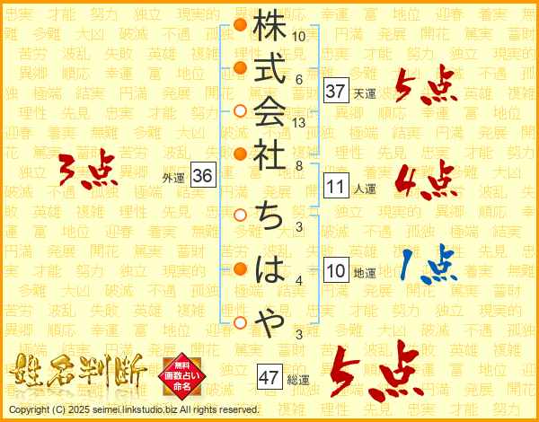 株(10画)式(6画)会(13画)社(8画) ち(3画)は(4画)や(3画)