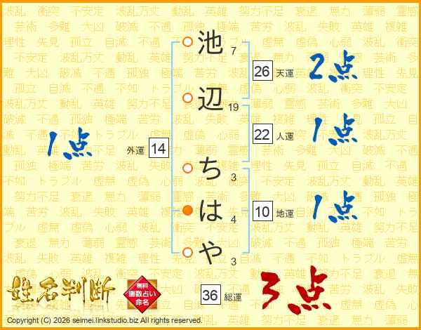 池辺ちはやさんの天運は26画の2点!