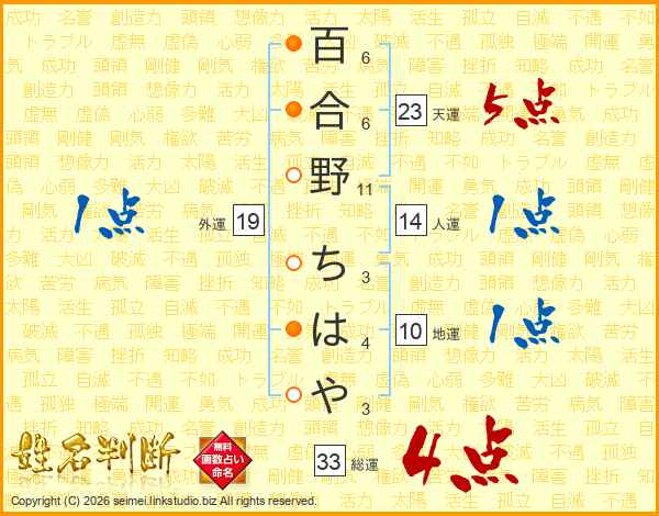 百合野ちはやさんの総運は33画の4点!