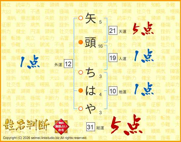 矢(5画)頭(16画) ち(3画)は(4画)や(3画)