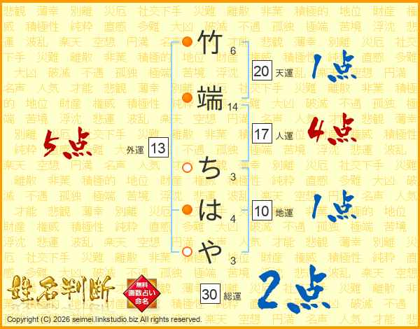 竹端ちはやさんの総運は30画の2点!