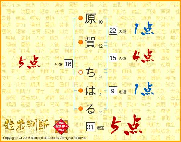 原賀ちはるさんの総運は31画の5点!