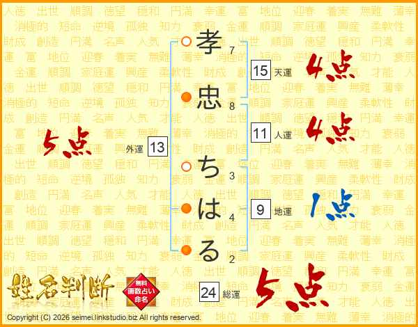 孝忠ちはるさんの総運は24画の5点!