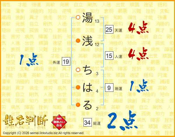 湯浅ちはるさんの総運は34画の2点!