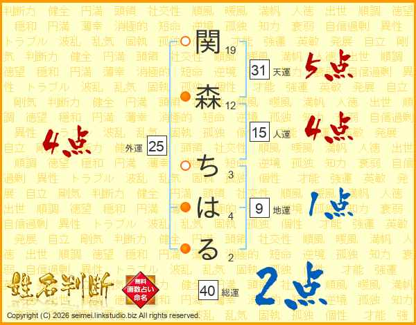 関森ちはるさんの総運は40画の2点!