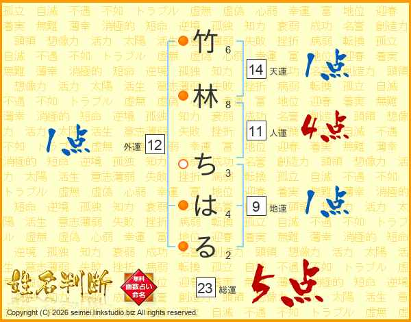 竹(6画)林(8画) ち(3画)は(4画)る(2画)