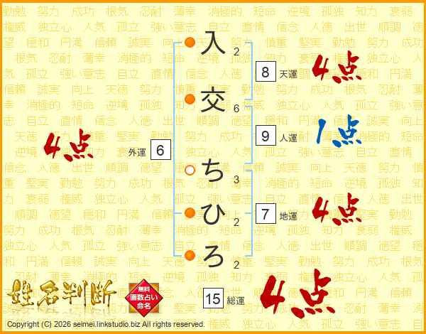 入交ちひろさんの総運は15画の4点!