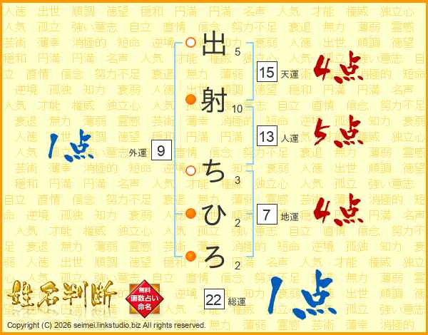 出射ちひろさんの天運は15画の4点!
