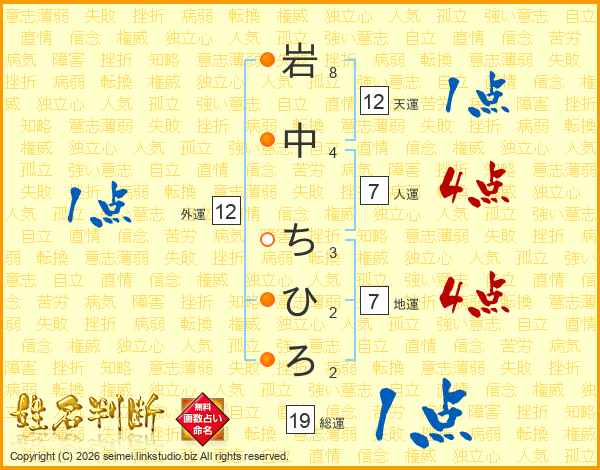 岩中ちひろさんの人運は7画の4点!
