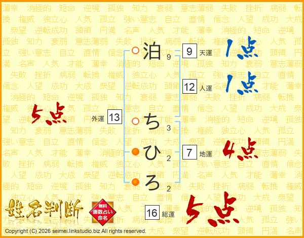 泊ちひろさんの総運は16画の5点!