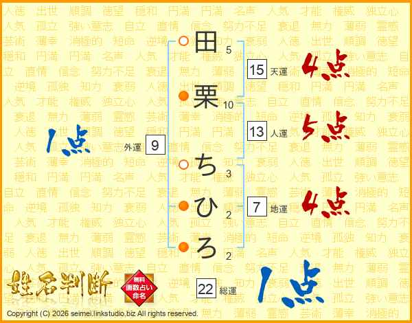 田栗ちひろさんの総運は22画の1点!
