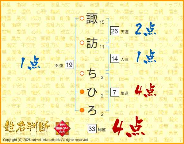 諏訪ちひろさんの総運は33画の4点!