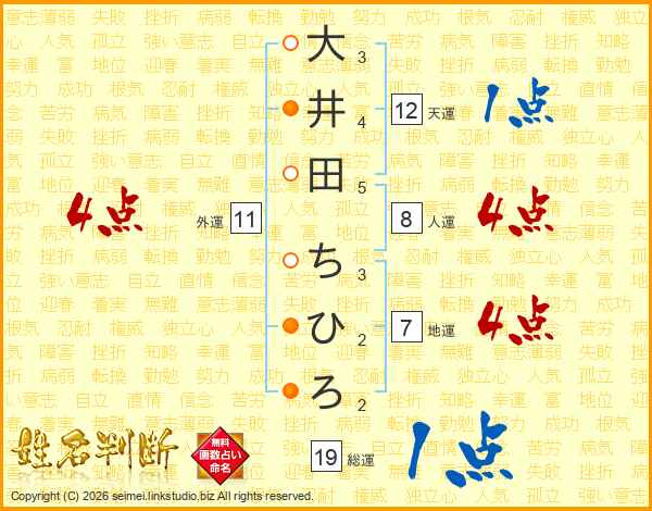 大井田ちひろさんの地運は7画の4点!