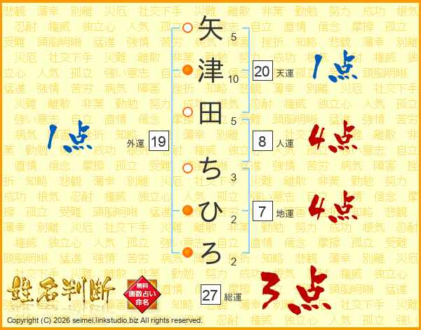 矢津田ちひろさんの総運は27画の3点!