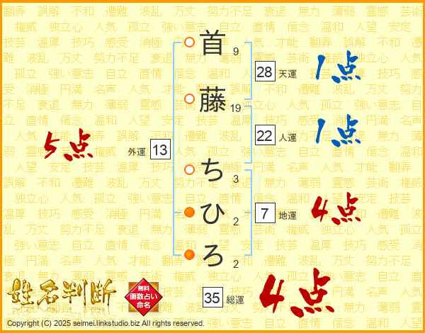 首藤ちひろさんの総運は35画の4点!