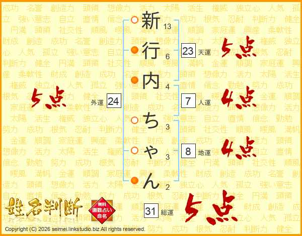 新行内ちゃんさんの総運は31画の5点!