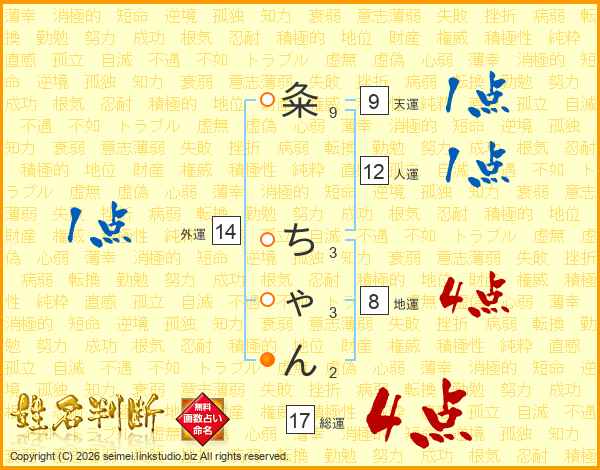粂ちゃんさんの総運は17画の4点!