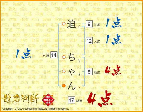 迫(9画) ち(3画)ゃ(3画)ん(2画)